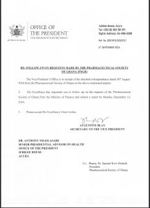 In April 2024, during an engagement session with PSGH and other pharmaceutical stakeholders at KAMA Conference Center, Alhaji Dr. Mahamudu Bawumia, Vice President and then-Presidential candidate of the ruling party expressed surprise at the delays and pledged his support. The Minister for Health, Hon. Okoe Boye, present at the session, confirmed that he had seen related documents. As a follow up to the engagements and discussions, PSGH sent a letter to the Vice President’s office, which was referred to the Presidential Advisor on Health, Dr. Anthony Nsiah-Asare. He assured PSGH that the portal for recruitment of health professionals would soon open and house officers would be prioritized.
